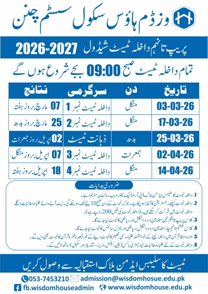 Email Address: admissions@wisdomhouse.edu.pk